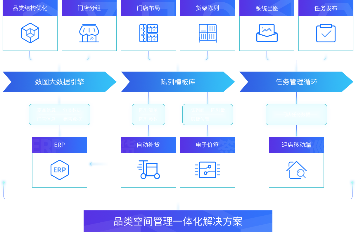 企業(yè)級品類(lèi)空間管理解決方案。適合中、大型連鎖企業(yè),各業(yè)務(wù)部門(mén)及門(mén)店協(xié)調作業(yè)。有完整的業(yè)務(wù)流程及數據分析支持。支持與ERP數據對接,自動(dòng)更新數據??偛科奉?lèi)結構分析、門(mén)店局部設計、貨架陳列設計、任務(wù)下發(fā)、任務(wù)監控、任務(wù)結果匯報,全流程覆蓋!門(mén)店在線(xiàn)手機查看任務(wù),看圖作業(yè)及在線(xiàn)結果匯報。一站式品類(lèi)空間管理,全解決!